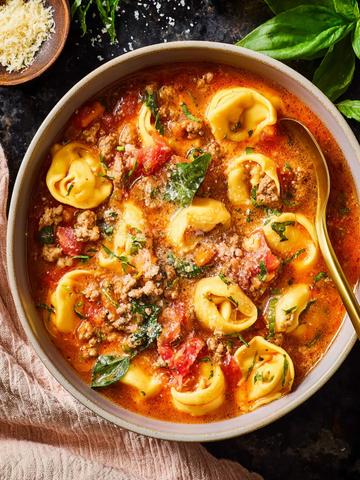 A comforting creamy soup with Italian sausage and cheese tortellini.