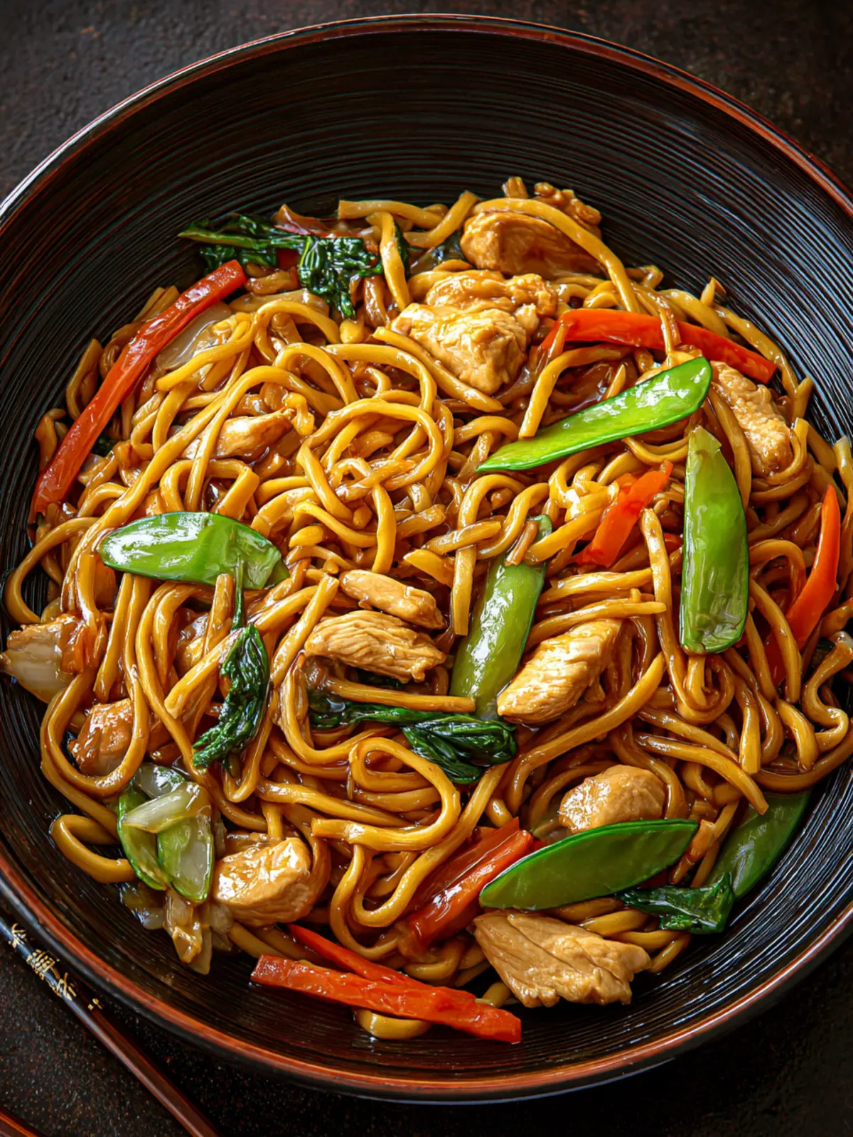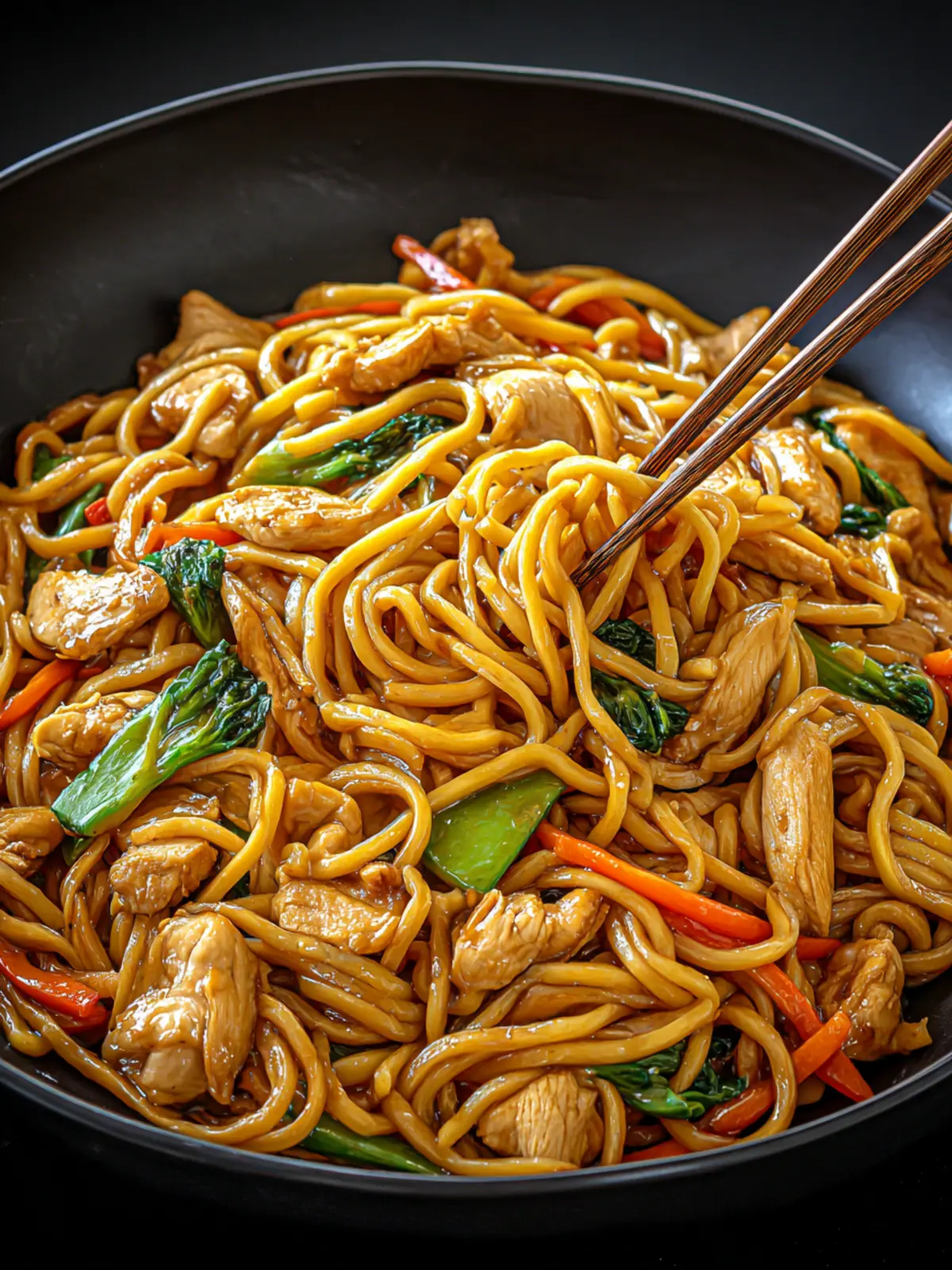 A delicious and quick chicken lo mein recipe made with fresh vegetables and savory sauce.