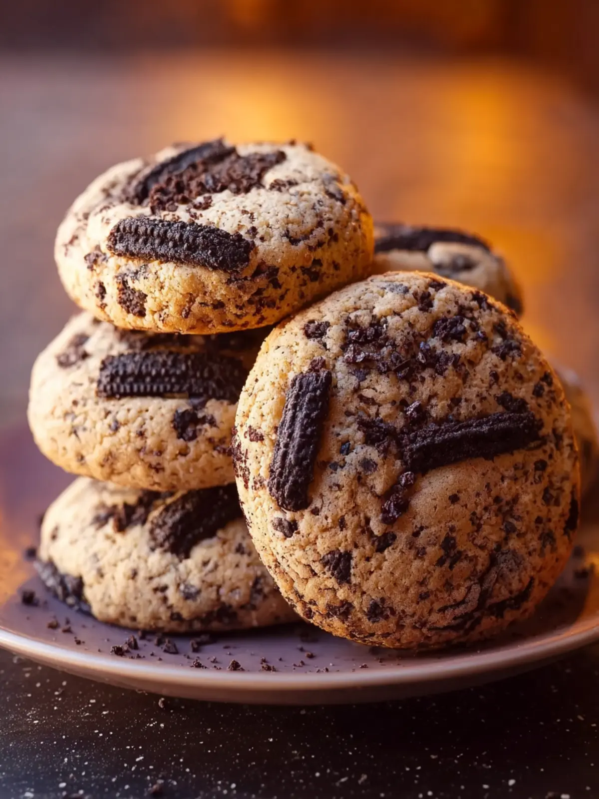 Classic Pairing: Serve your freshly baked cookies warm with a glass of cold milk. The creamy milk perfectly complements the rich chocolate and crunch of the Oreos.