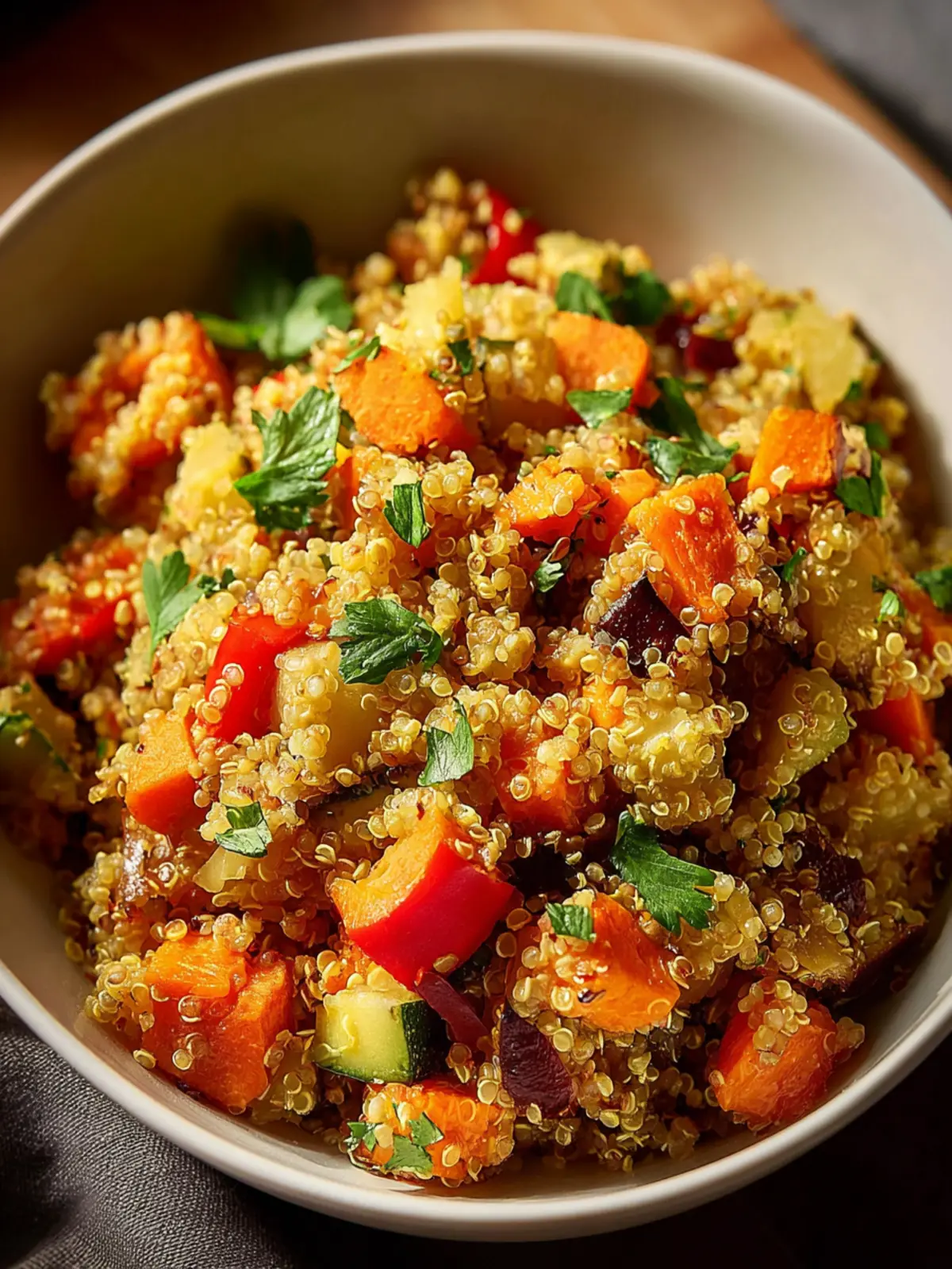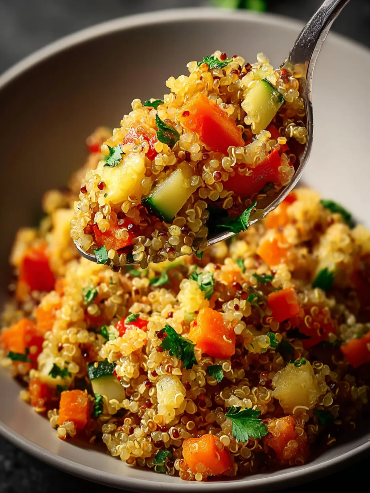 A healthy and flavorful quinoa dish loaded with vegetables, perfect for a nutritious meal.