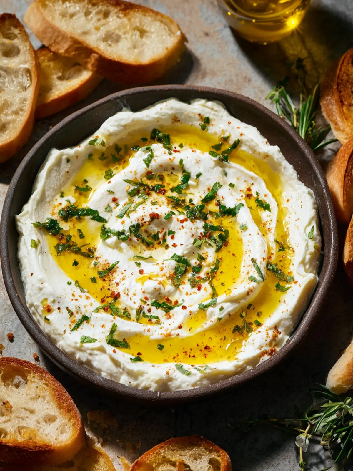 This whipped ricotta is a delightful and creamy dip that can be served with a variety of dippers.
